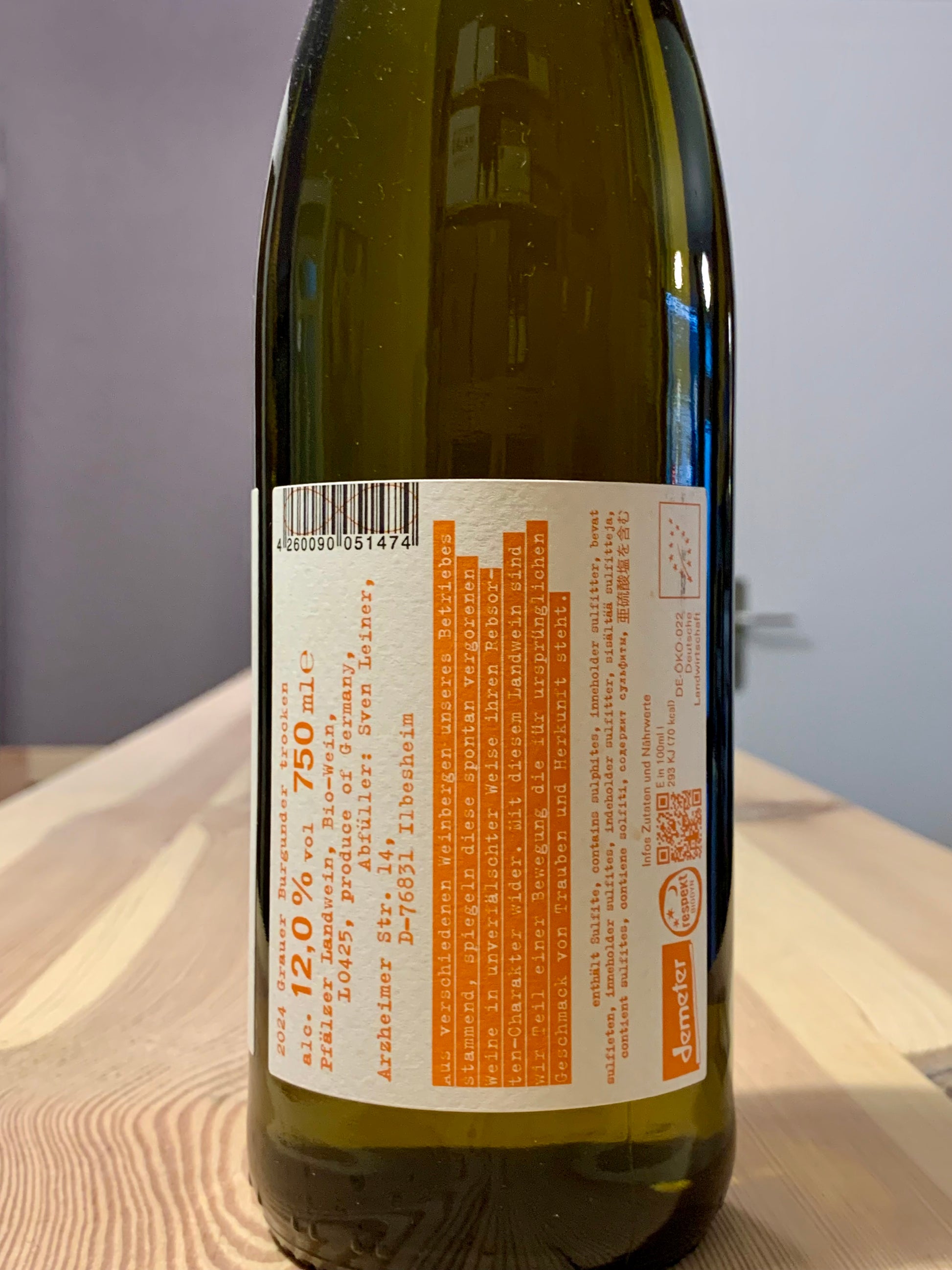 weitere Infos: Alkoholgehalt: 12% l Rebsorte: Grauburgunder l Geschmack: trocken l Allergene: Sulfite l Trinktemperatur: 9-11 Grad l Verschluss: Schraubverschluss l Anbaugebiet: Pfalz l Hersteller: Weingut Jürgen Leiner, Arzheimerstr. 14, 76831 Ilbesheim I Zertifiziert Bio: DE-ÖKO-022 I Demeter I respekt Biodyn
